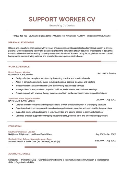 Support Worker CV Example
